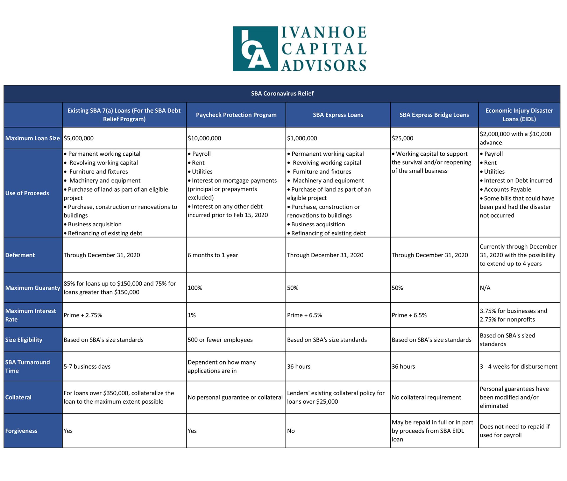 - 7(a) loan amount gets increased to $10 million through December 31, 2020